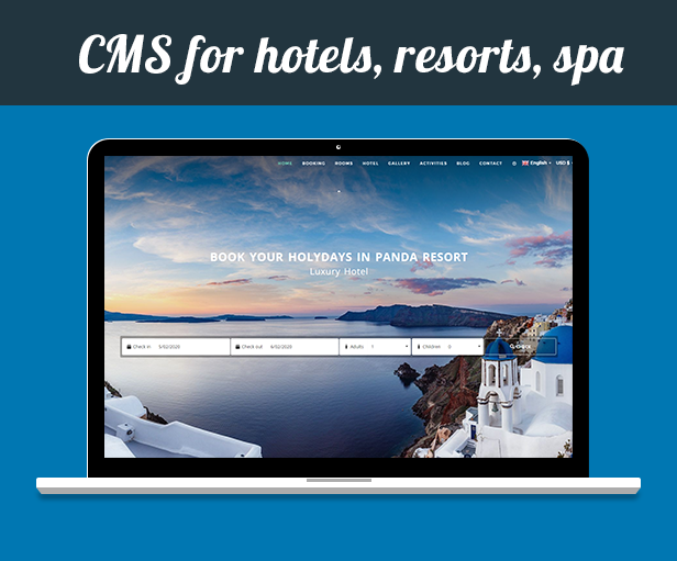 Web agency or just an owner of hotel, resort, spa, lodging or bed and breakfast? This CMS is built for you! Add your rooms. Manage your prices. Create original activities and tours, extra services and follow up your bookings!
